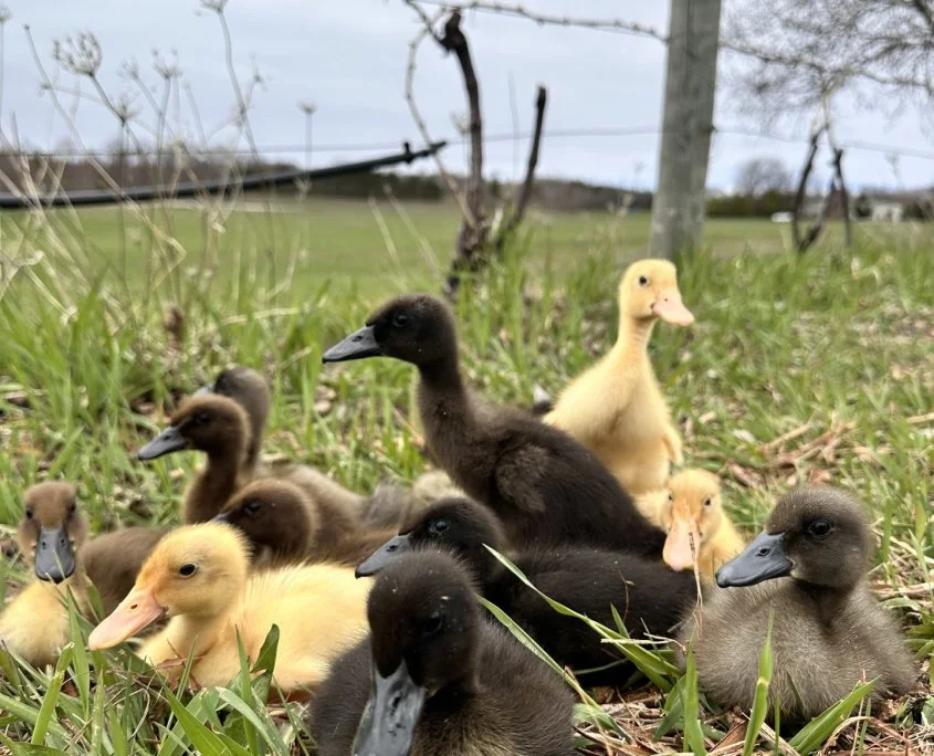 We’re thrilled to introduce 14 Indian Runner ducklings to the family, three of which were lovingly hatched from eggs by our very own General Manager, Sarah Peschel. These quirky, upright little waddlers are more than just adorable—they’re a key part of our sustainable vineyard management plan.